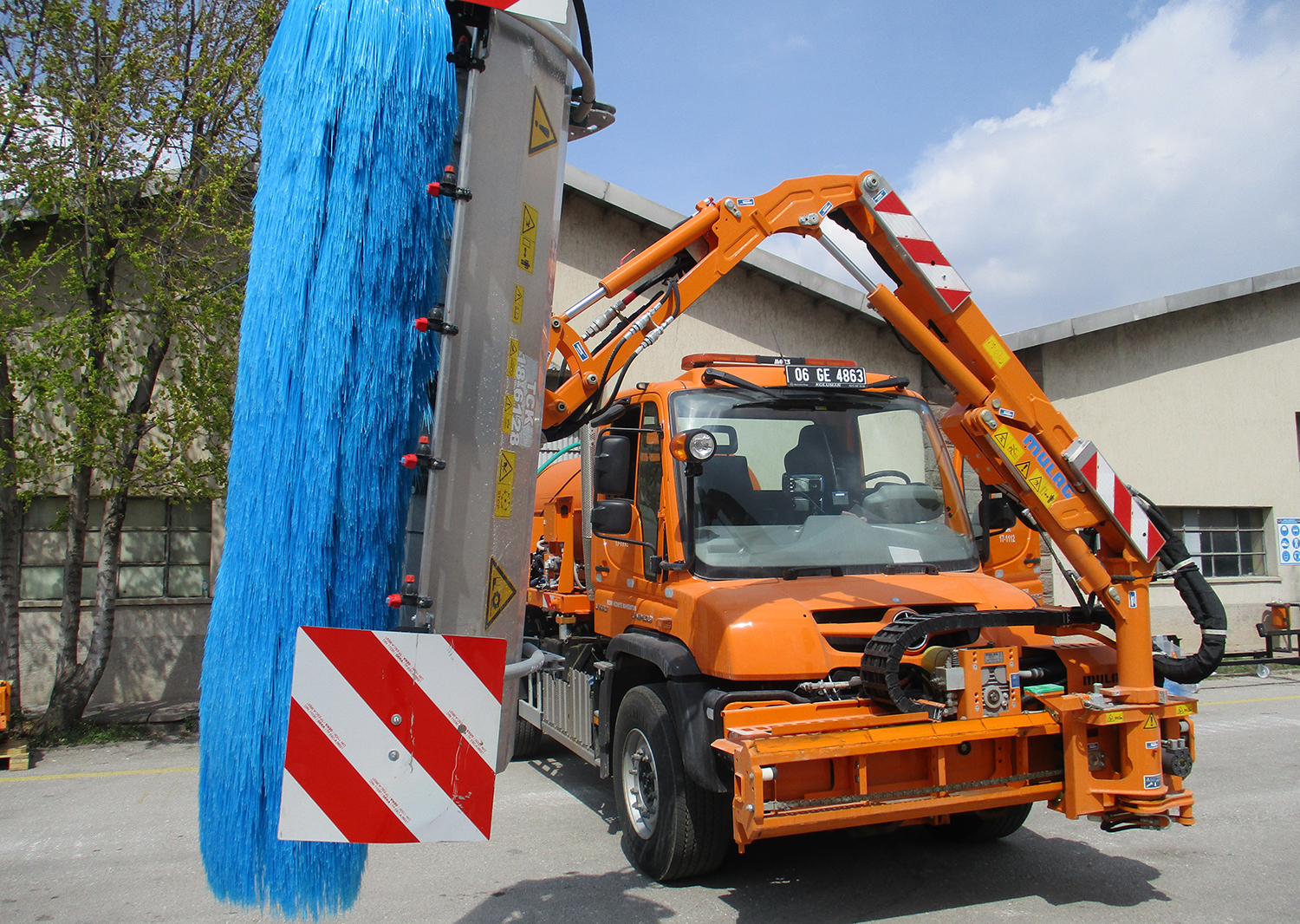 Hızlı Değişebilen Aparat Bağlantı Sistemi ile Ot ve Dal Biçme Ekipmanı, Tünel Yıkama ve Bariyer Yıkama Ekipmanı Bağlanabilir